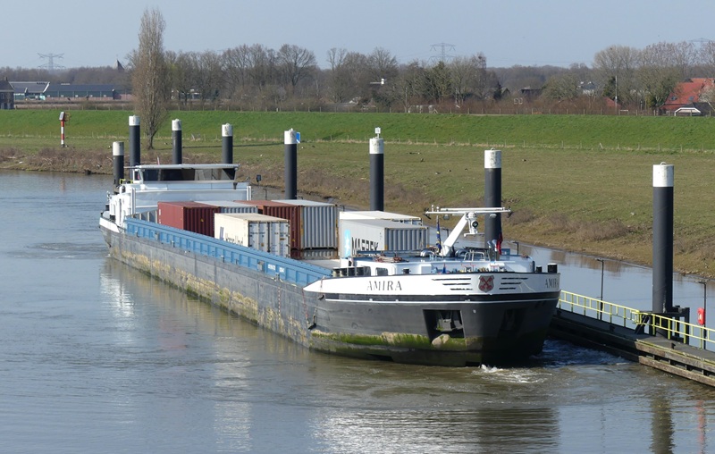 Amira , 110,00 x 11,45 x 3,64 , 3214 ton , Bouwjaar 2008 , Werf Centromost Stocznia Rzeczna in Plock ( Polen ) en van Gemert in Nijmegen ( Nederland ) , 1800 pk Cummins en 571 pk Scania – van Wijk boegschroef , eigenaar de Vries scheepvaart in Leiden , ENI 02331447