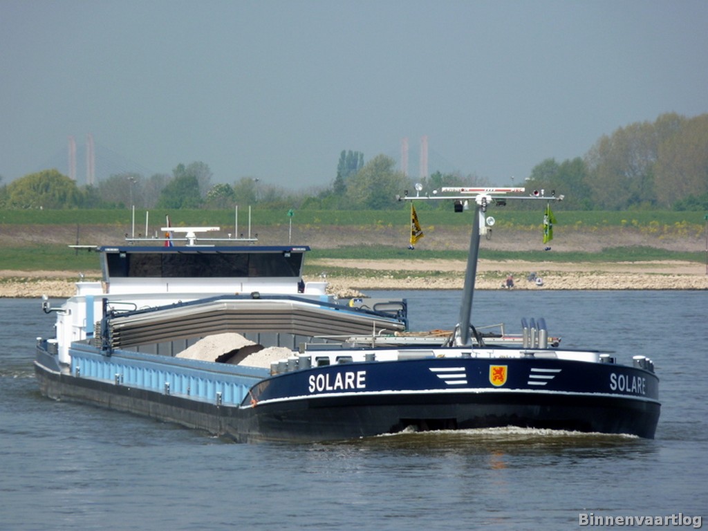 Solare , 110,00 x 11,45 x 3,63 , 3202 ton , Bouwjaar 2011 , Werf Centromost Stocznia Rzeczna in Plock ( Polen ) , 1521 pk Caterpillar en 608 pk Caterpillar – Verhaar Omega-Jet boegschroef , eigenaar Delero ( F.F.Koppelaars ) in Zwijndrecht , ENI 02331449.