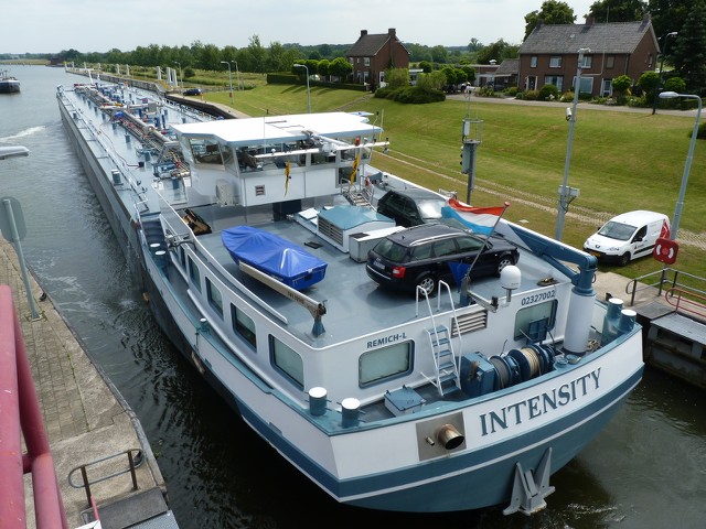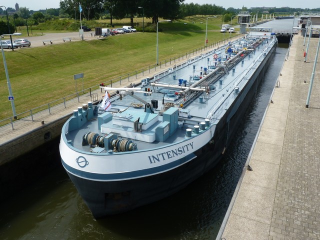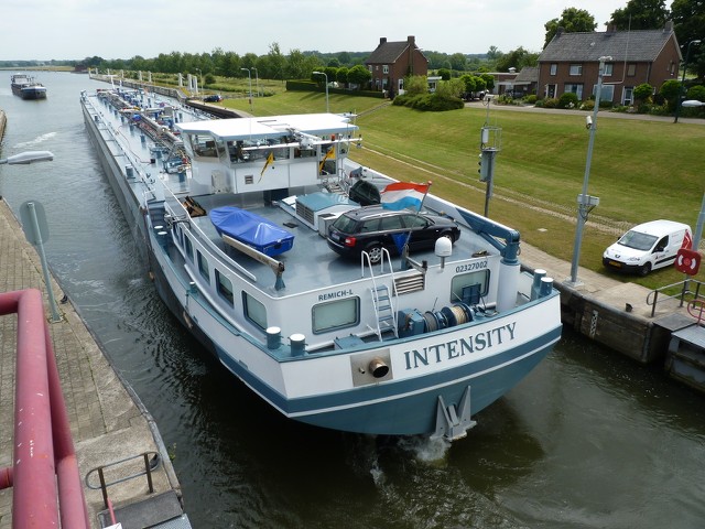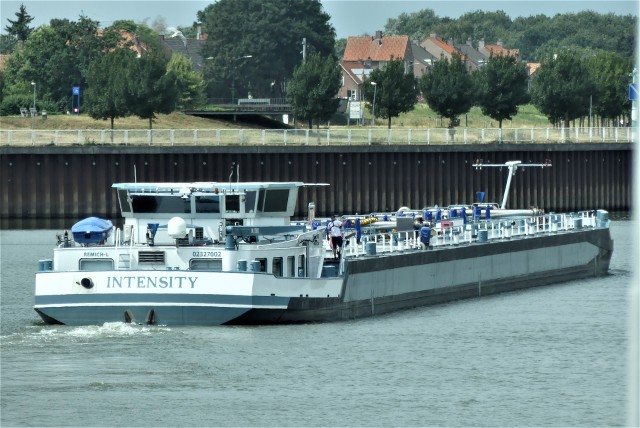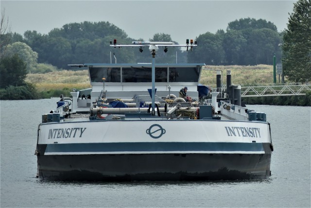 Intensity , 110,00 x 11,45 x 3,60 , 2995 ton , Bouwjaar 2005 , Werf Giurgiu Shipyard in Giurgiu ( Roemenië ) en Bijlsma Shipyard in Lemmer ( Nederland ) , 2028 pk Caterpillar , ex Lyaemer , eigenaar Pamela Shipping in Luxemburg , ENI 02327002