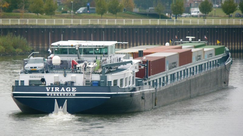 Virage , 110,00 x 11,40 x 3,50 , 3006 ton , Bouwjaar 1993 , Werf Societatea Comerciala Navol in Oltenita ( Roemenië ) en Weka Dane BV in Krimpen a/d Lek ( Nederland ) , 1835 pk Caterpillar en 510 pk Caterpillar Veth-Jet boegschroef , ex Eben-Haëzer , ex Koos , ex Vaya Con Dios , eigenaar Leenman Vissers Vof in Werkendam , ENI 02321028