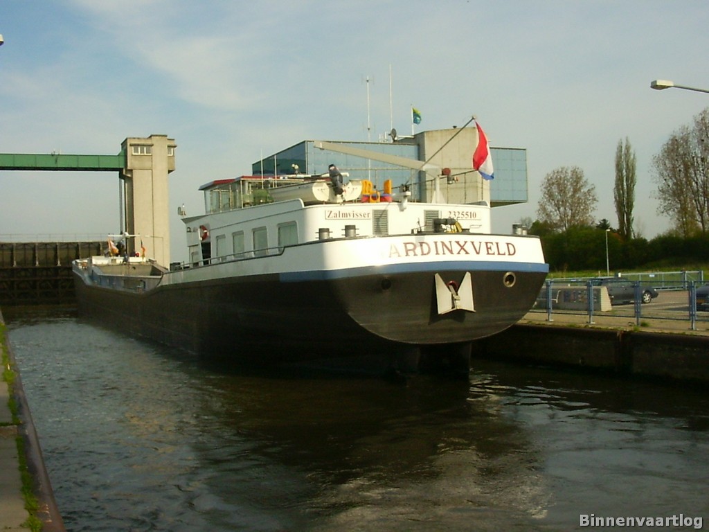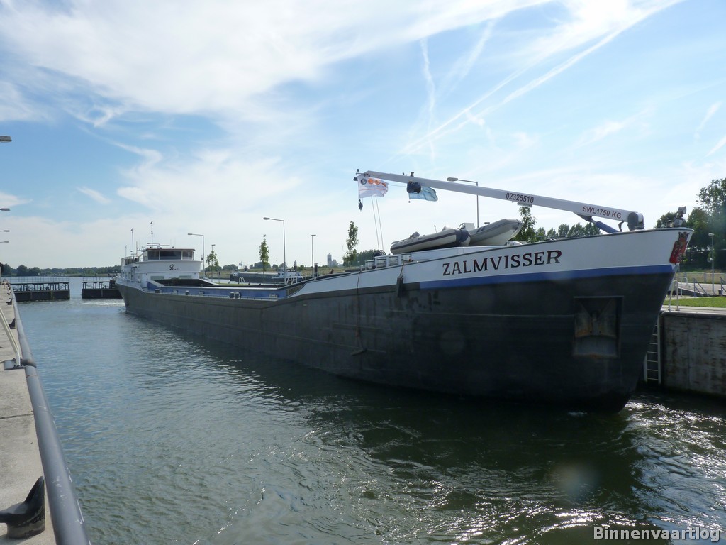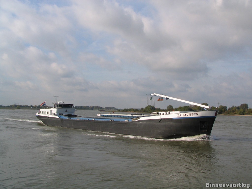 Zalmvisser , 70 x 7,45 x 3,15 , 1000 ton , Bouwjaar 2002 , Werf Șantierul Naval Oltenița in Oltenița ( Roemenië ) en De Gerlien – Van Tiem in Druten ( Nederland ) , 644 pk Caterpillar en 320 pk DAF – van Tiem boegschroef , eigenaar A.M. Verschoor in Hardinxveld-Giessendam , ENI 02325510