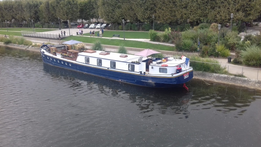 Voici le bateau à Castets en Dorthe, amarré devant l’écluse de descente en Garonne.