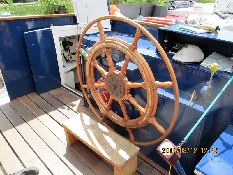 Et haute technologie embarquée sur cette unité : maccaron de 1917. Et le petit détail, la ficelle jaune : dans la main droite du capitaine afin de "faire patiner l'embrayage" lors de manœuvre diverse", en restant à la barre de la main gauche et les pieds sur le petit banc. Et bien sur l'accélérateur.