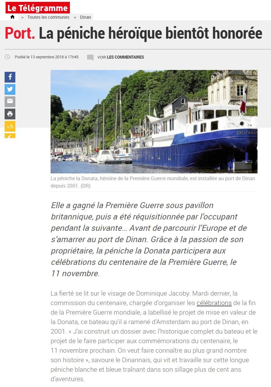 Un article du journal Le Télégramme en date du 13 septembre 2018 sur le DONATA, amarré à Dinan, article dans lequel le rôle de ces bateaux est détaillé :