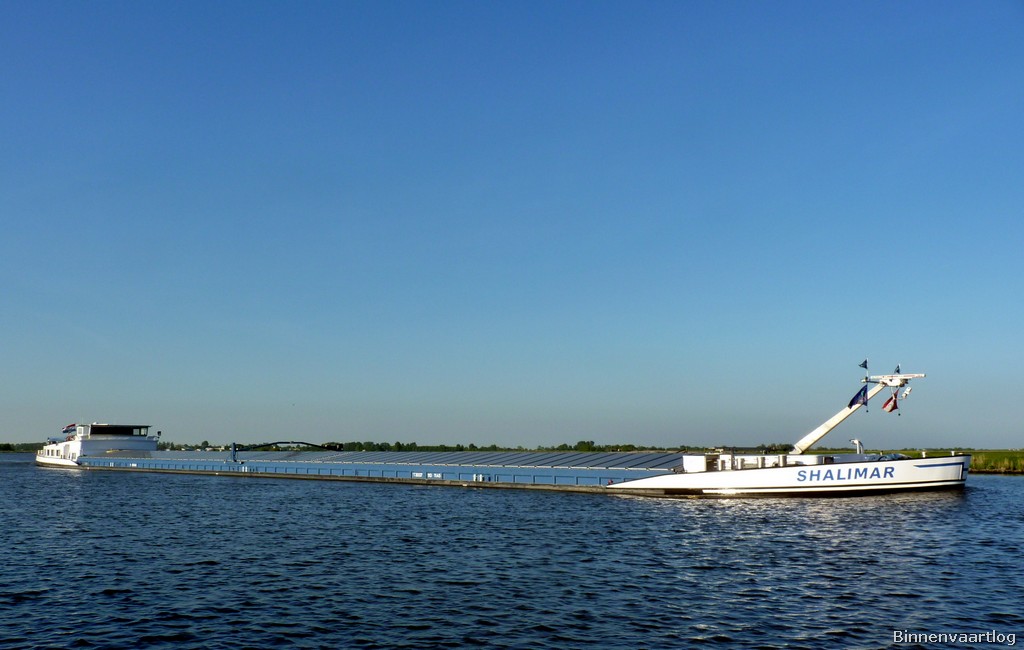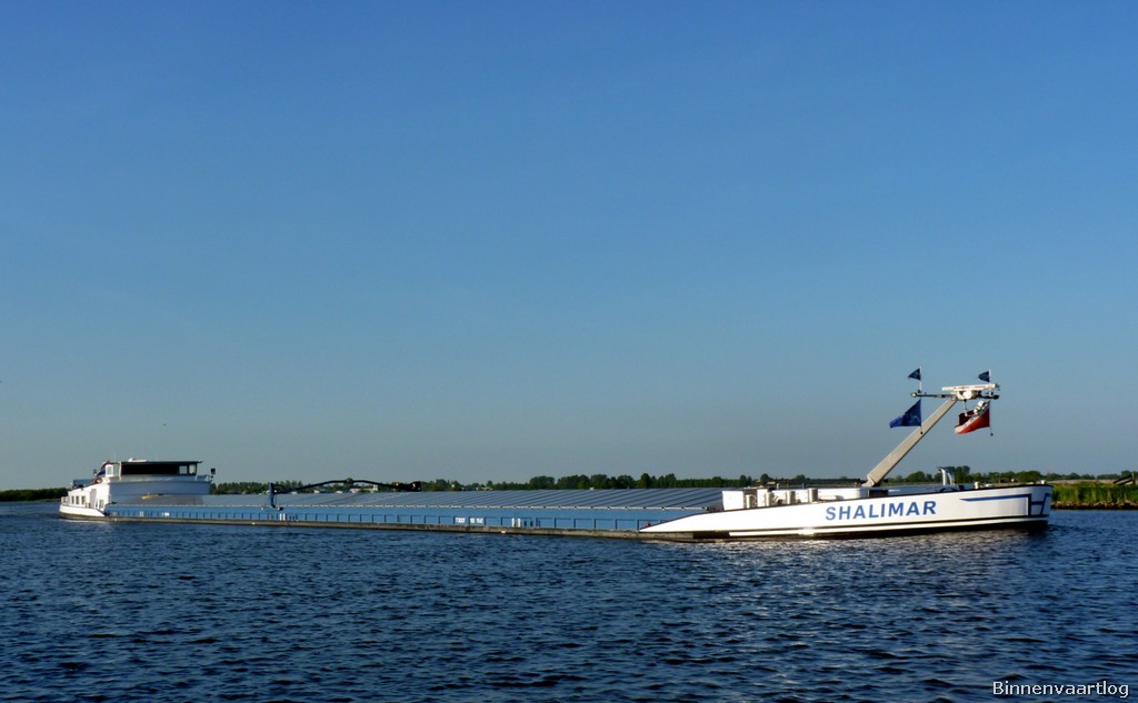 Shalimar , 110,00 x 11,45 x 3,42 , 3007 ton , Bouwjaar 2007 , Werf Brodogradiliste in Apatin ( Serbia ) en Bodewes in Millingen aan de Rijn ( Nederland ) , 1521 pk Caterpillar en 571 pk Scania – Verhaar Omega-Jet boegschroef , eigenaar Vof.Shalimar ( L.den.Haan ) in Vreeswijk , ENI 02328482