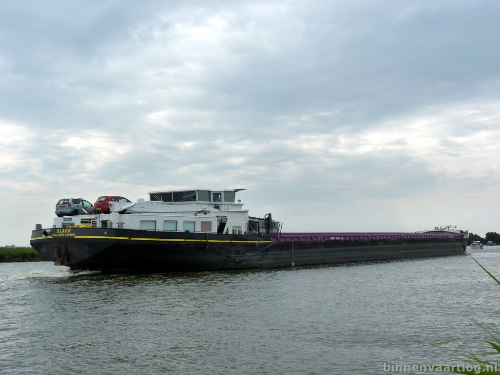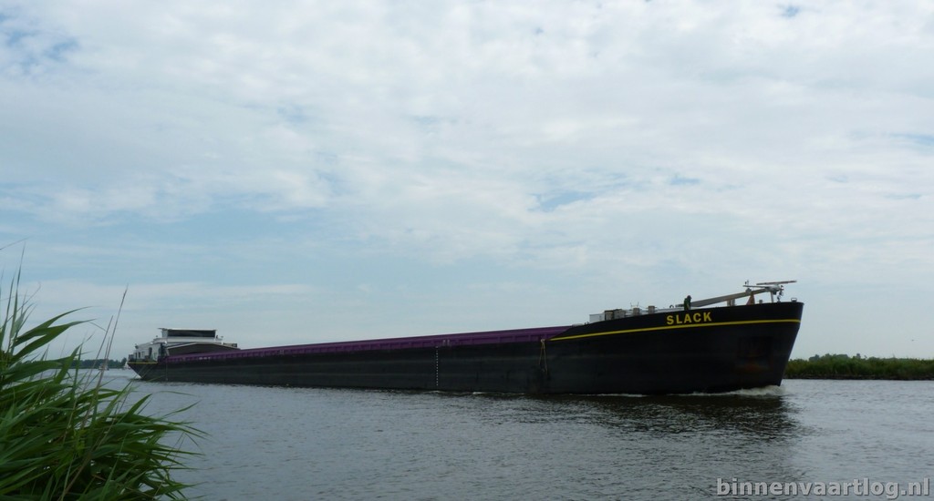Slack, 110,00 x 11,45 x 3,64 , 3256 ton , Bouwjaar 2012 , Werf Shipyard Apatin( Tsjechie ) en Afbouw Bodewes Binnenvaart B.V. in Millingen a/d Rijn ( Nederland ) , 1836 pk Caterpillar en 608 pk Caterpillar boegschroef , Eigenaar Scheepvaartonderneming Slack CV , ENI 02332221.
