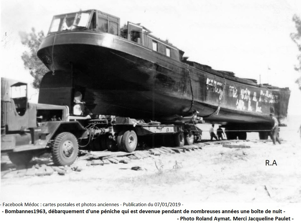 Voici un bateau descendu dans le Midi fin des années 60 pour être transformé en restaurant sur le lac d’Hourtin plus exactement à Maubuisson par Carcans.