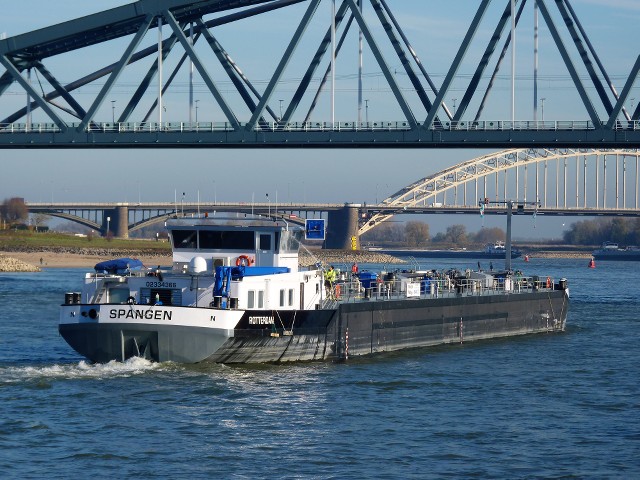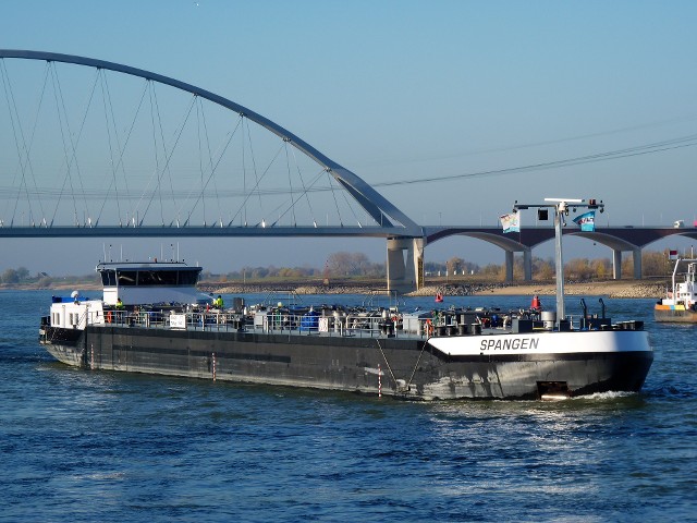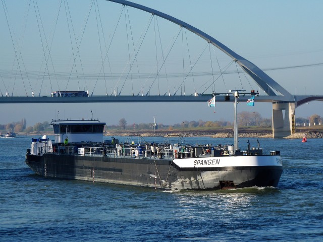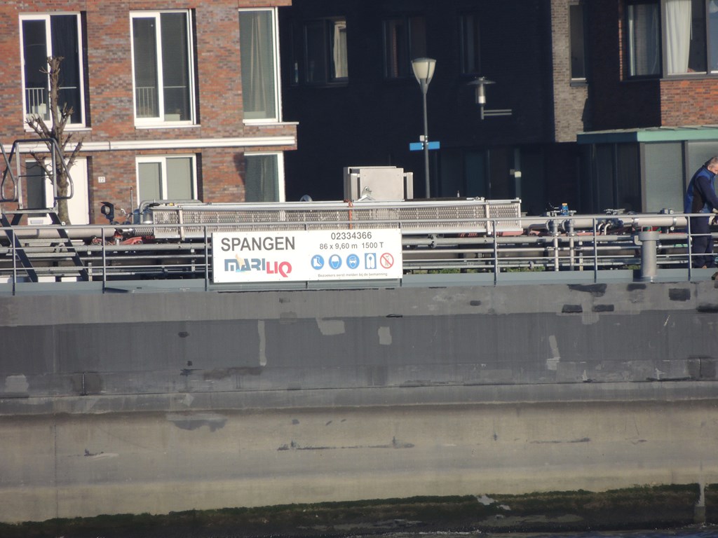 Spangen , 86,00 x 9,60 x 3,20 , 1500 ton , Bouwjaar 2011 , Werf Kladovo Shipyard in Kladovo en ( Servië ) en Breko Nieuwbouw BV in Papendrecht ( Nederland ) , 1521 pk Caterpillar , eigenaar Valliante Chartering BV in Zwijndrecht , ENI 02334366.