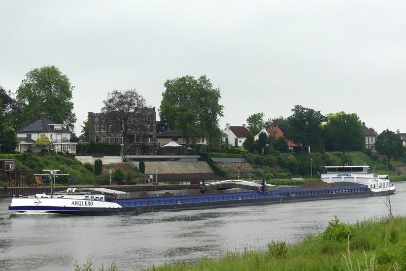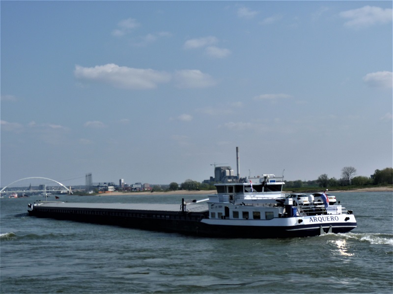 Arquero , 135,00 x 11,45 x 3,57 , 3936 ton , Bouwjaar 2009 , Werf Kladovo Shipyard in Kladovo ( Serbia ) en de Groot Motoren in Dordrecht ( Nederland ) , 2 x 1278 pk Mitsubishi en 2 x 560 Cummins – Ballegooy boegschroef , ex River Side, ex Salvadora , eigenaar Vof Dooms – Koster in Terneuzen , ENI 02332398