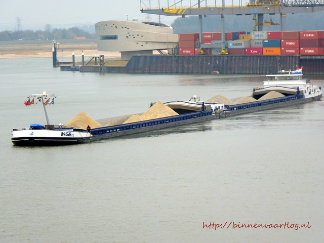 Inge , 94,50 x 11,45 x 3,60 , 2770 ton , Bouwjaar 2009 , Werf Kladovo Shipyard in Kladovo ( Serbia ) en Dolderman in Dordrecht ( Nederland ) , 2 x 1836 pk Caterpillar en 608 pk Caterpillar – Veth-Jet boegschroef , eigenaar Vof. Inge Shipping (J. Lindhout) in Tholen , ENI 02331067