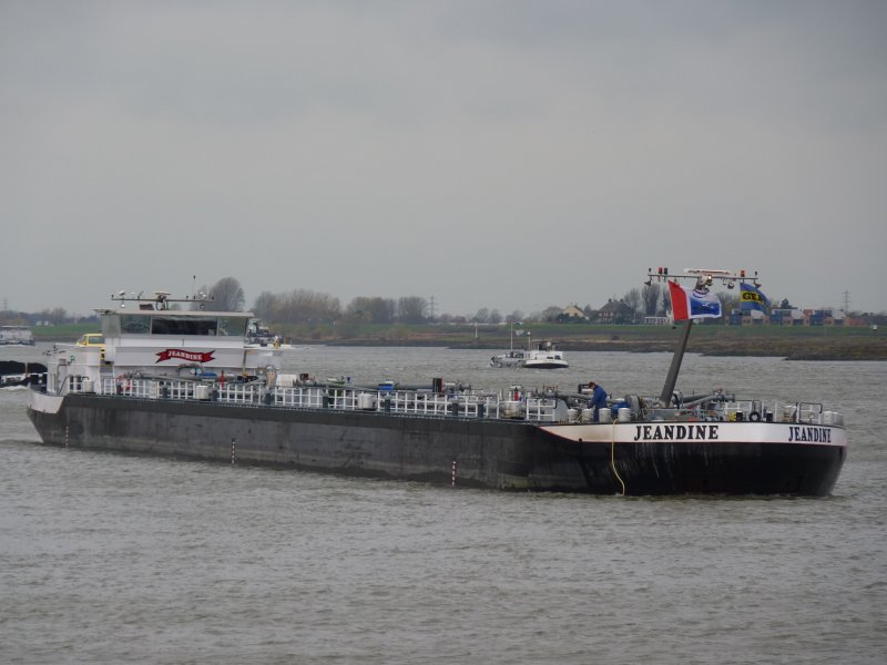 Jeandine , 110,00 x 11,40 x 3,00 , 2365 ton , Bouwjaar 2004 , Werf Leninskaya Kuznitsa Shipyard in Kiev ( Ukraine ) en Technisch Bureau H & U in Heiningen ( Nederland ) , 1699 pk Caterpillar en 395 pk Caterpillar - van Tiem boegschroef , eigenaar P.Bats in Schmagtenhagen , ENI 04803290