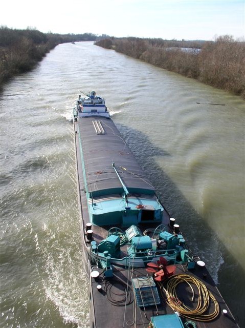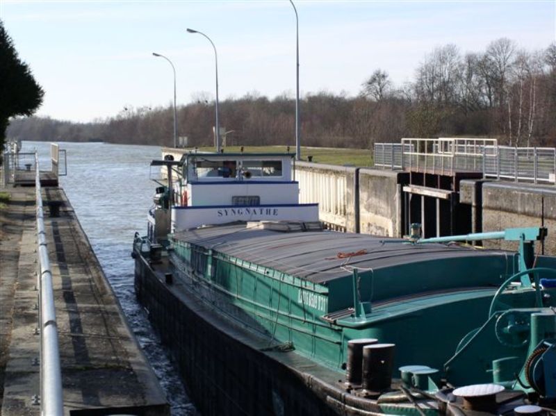 Photos de juillet 2005, écluse n°7 de Réchicourt-le-Château, canal de la Marne au Rhin versant Meurthe. Le marinier convoyait son bateau jusqu'à Mulhouse, où il devait être transformé en logement.