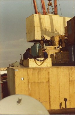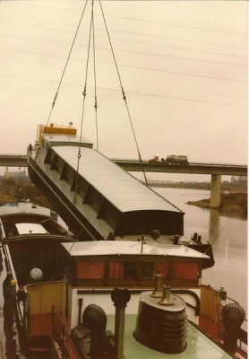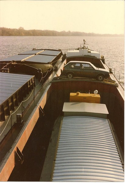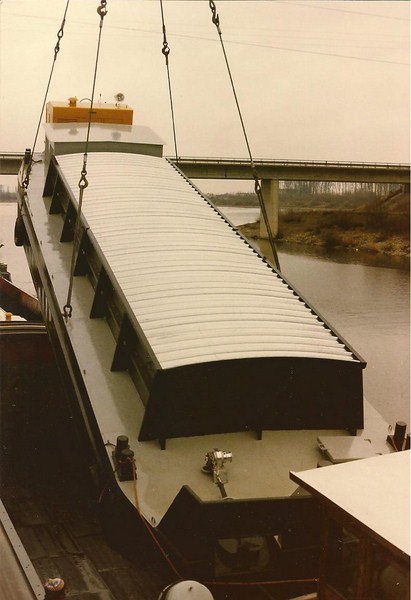 chargement de barges à Chalon construites au chantier naval de Chalon pour Port Saint Louis en 1984 environ, 2 petites dans le bateau, 2 grandes bout à bout à bord dans les biefs à chaque écluse, on les rentrait en premier, on les poussait pour sortir et on les remettait à bord, le plus mauvais souvenir je pense de notre carrière à bord, et on n'avait pas de propu !