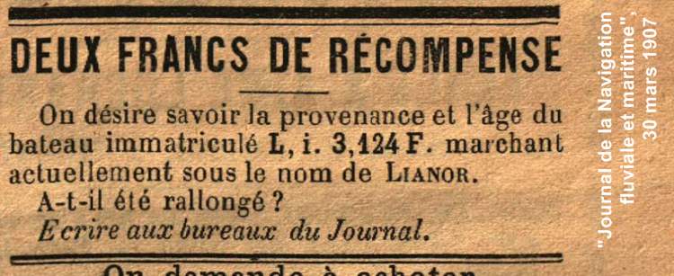 Et bien on publiait une annonce dans le "Journal de la Navigation fluviale et maritime", comme celle-ci, parue dans l'édition du 30 mars 1907 :