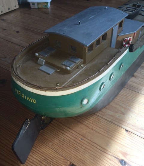 Je viens de récupérer cette péniche de 1,20 de longueur en modèle réduit sans aucune information disponible. C'est sans doute une péniche de type Freycinet à l'échelle 1/30 mais peut-être pourrez-vous m'en dire plus ou sur un modèle de même construction ?