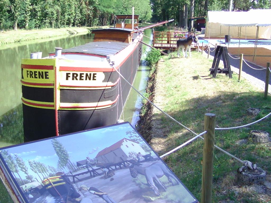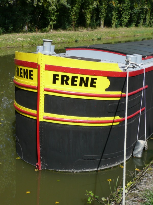 FRENE semble être sa devise originelle, car le panneau explicatif indique qu'il fait partie d'une série de 12 bateaux du même modèle qui portent tous un nom d'essence de bois en hommage aux berrichons en bois.