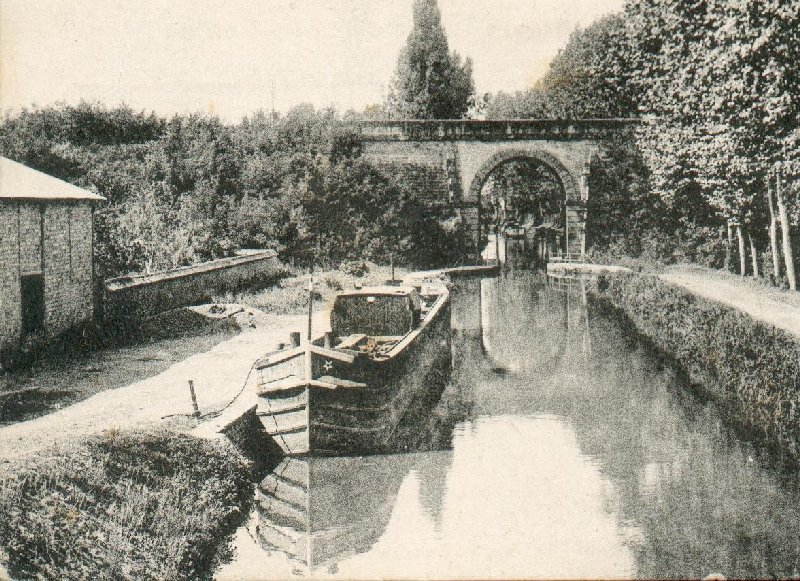 Au fond, le pont de chemin de fer