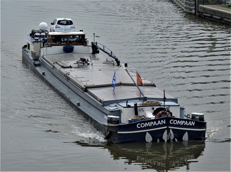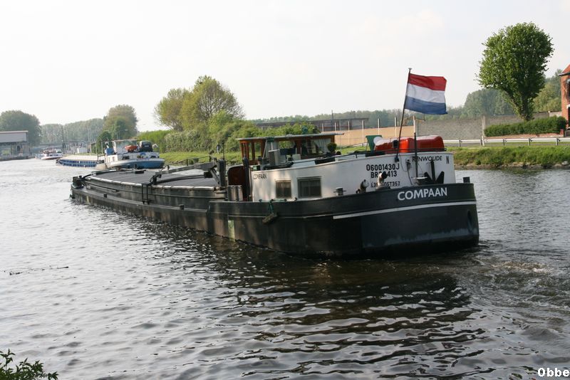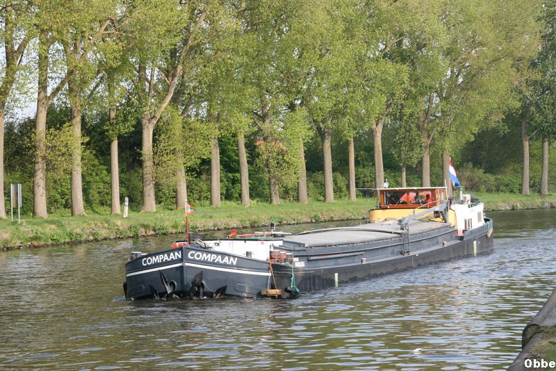 Compaan , 38,83 x 5,06 x 2,42 , 357 ton , Bouwjaar 1959 , Werf De Wilde in Burcht ( Belgie ) , 360 pk Cummins en 130 pk Iveco boegschroef , ex Apte, ex Mehari , ex La Coruna , ex Vita , eigenaar C.J.Compagne in Hazerswoude Dorp , ENI 06001430
