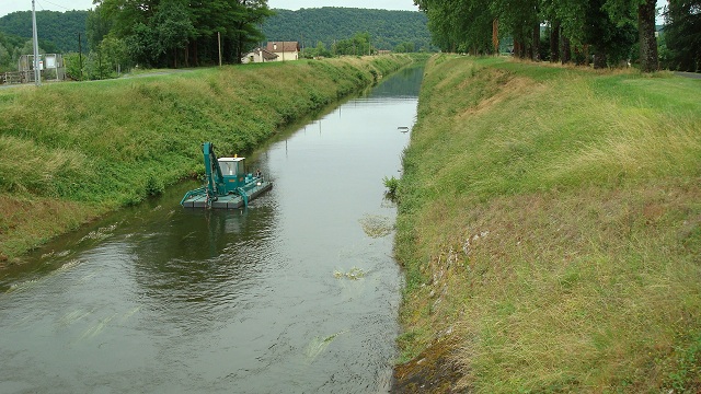 voici un engin pour netoyer le fond du canal il ce trouve sur le canal de lalinde sylda
