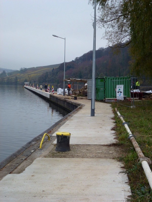Ah ! Souvenir d'un beau chantier ! Rénovation de l'estacade amont de l'écluse d'Apach ! Avec un bateau (appartenant aux Ets Roche de Brazey en Morvan
