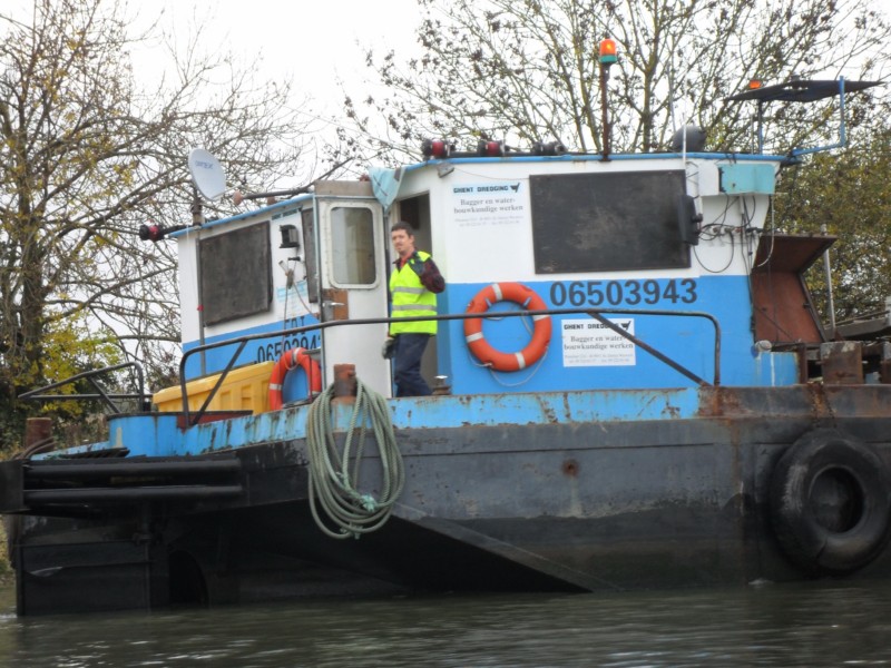 Je vous presente ce bateau en pleine action!! il s'occupe de retirer les enormes blocs de béton mal en point des rives du canal pour les remplacer par de gros rochers qui permettront au chemin de halage de ne pas se retrouver euh ben dans le canal lol.