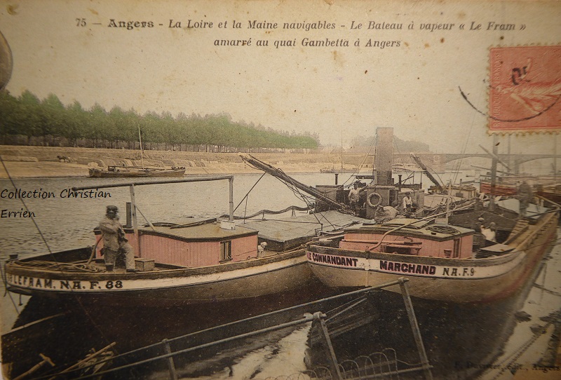 je vous propose cette très belle carte postale prise à Angers. Deux bateaux identifiés.