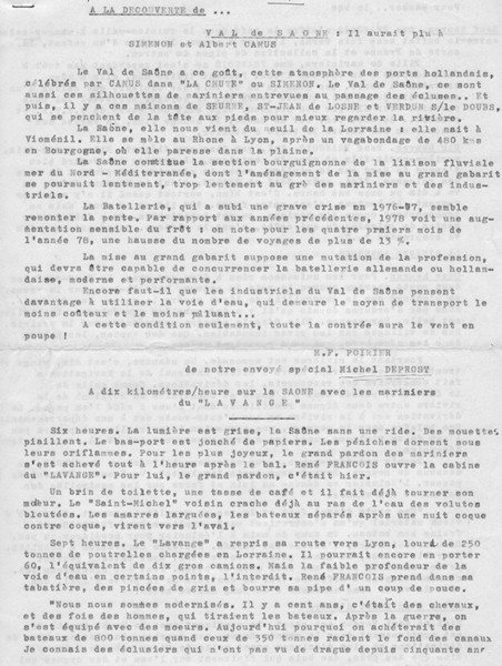 A la découverte du Val de Saône par un journaliste des Dépêches en 1978, sur le Lavange à la famille François.