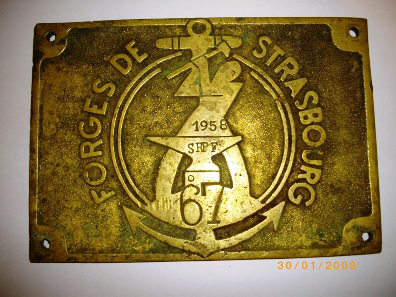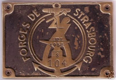 ROGER 51 a écrit:bonjour .non je ne le pense pas , je dis bien si mes souvenirs sont exacts ,se serait une plaque du meme type avec une inscription en forme de cercle , Ste des chantiers et ateliers du rhin (d'ou le nom scar) avec une ancre et un cordage au centre , a la place de l'enclume et du forgeron, mais sous toutes reserves . Qui peut nous aider ??