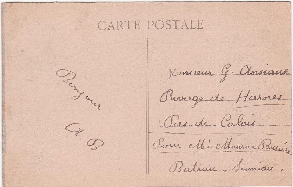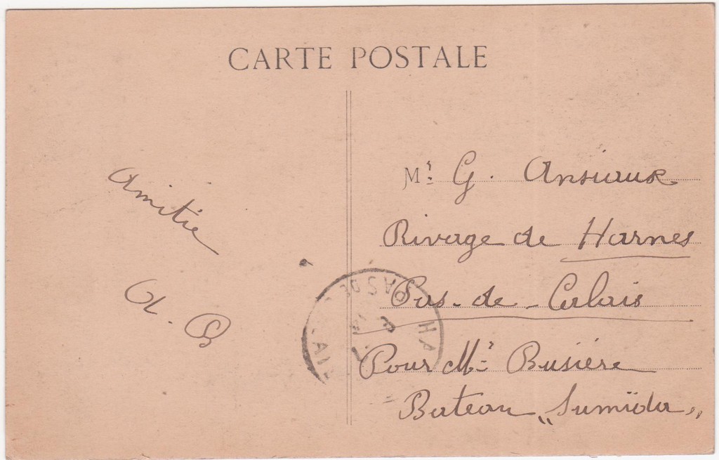 Dans les archives persos de mon épouse, je viens de trouver deux cartes des années 1913/1915. Une correspondance d'un militaire avec sa famille (le frère de la grand mère de mon épouse) et l'on voit la devise de SumÏda. Je ne sais rien de plus sur ce bateau : bois, fer , 38 m ?