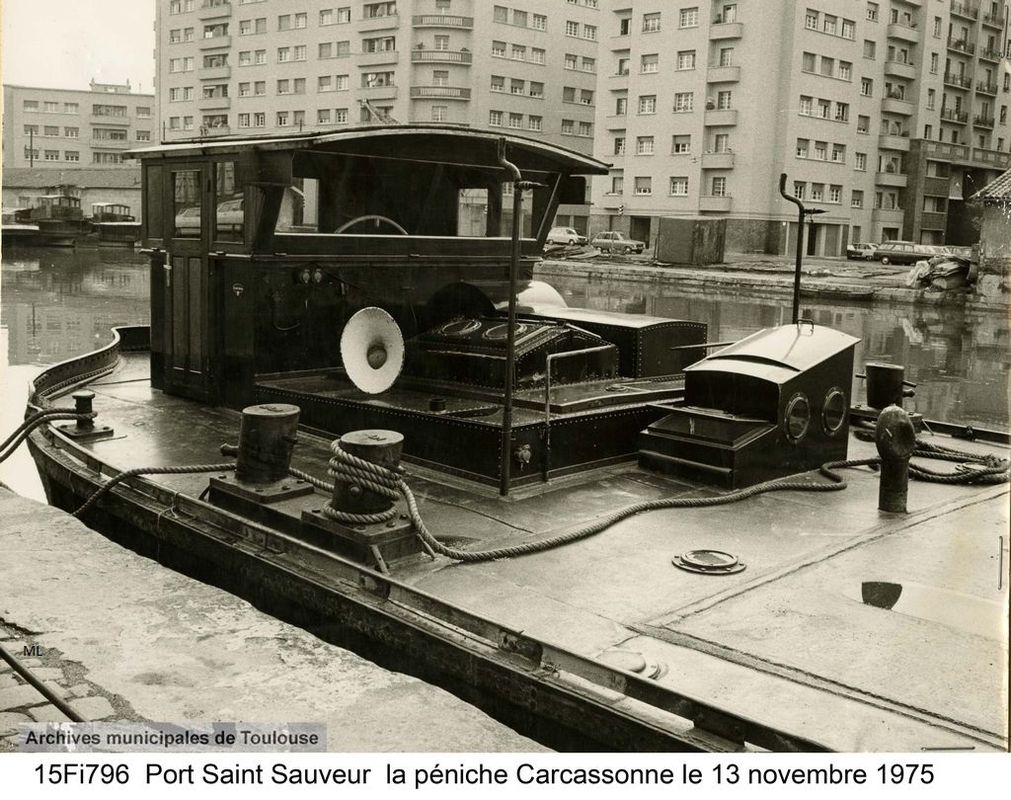 amarré au port Saint-Sauveur à Toulouse, il est tout juste désarmé et attend d'être transformé.