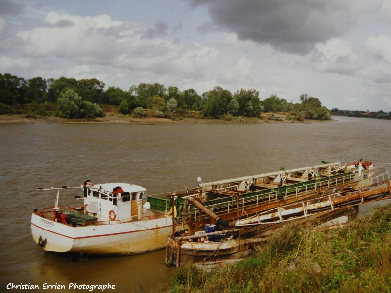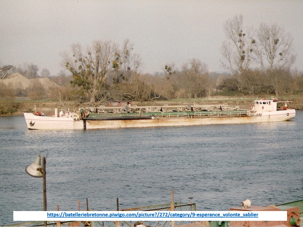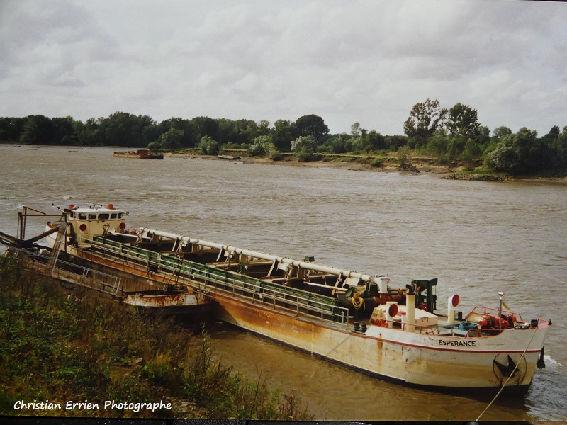 ‘’ L'Espérance accoste cap aval en rive droite en face du dépôt de sable SABLIVAT à Saint Julien de Concelles .Le Concorde était le bateau suceur qui l'approvisionnait.’’