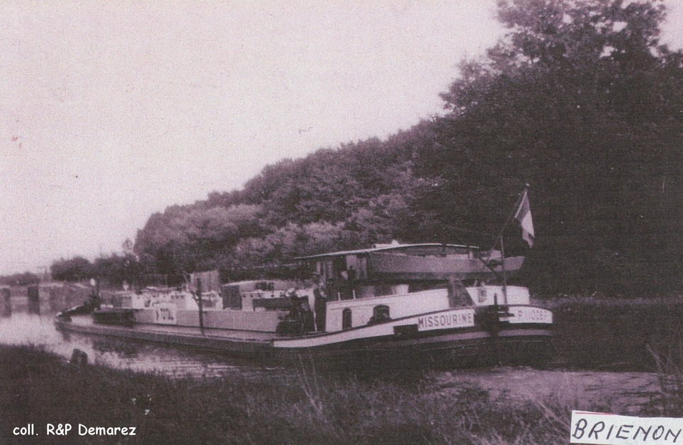 Le MISSOURINE vu de l'arrière, sur le canal de Bourgogne à Brienon-sur-Armançon (carte postale de la collection de Reine et Pierre Demarez) :