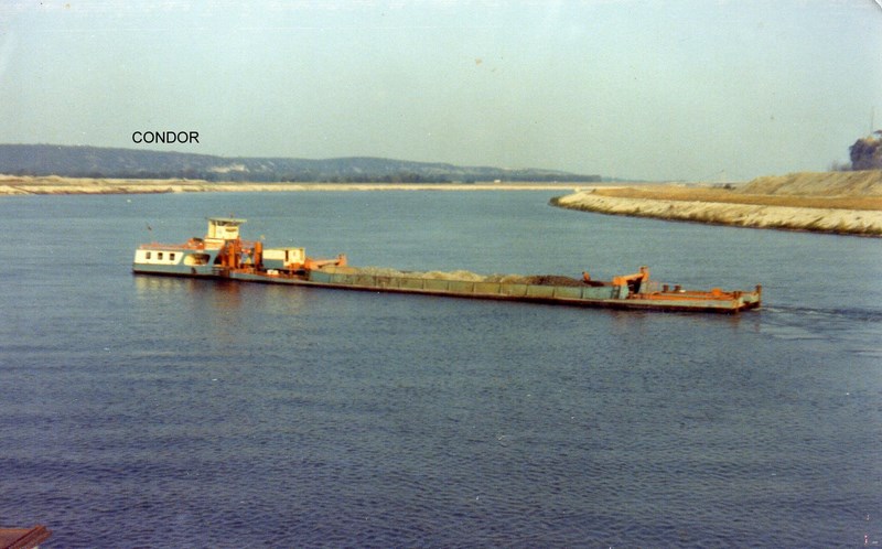en environ an 72 ce pousseur a etait coulé au pont du peck avalant avec 6 barges de gravats moi sur l elan socentr a convoi a vide 160 metres lui bloqué sous le pont pour se placer pour le pont de chemin masquer au radar avec l echo tu pont ces pouseur sans VHF on a put l echouer a l aval du pont route pas de blessés !!!!!!