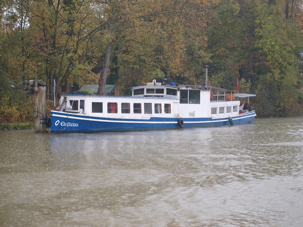 Ce serait un ancien bateau à passagers du Rhin avec à l'époque un moteur Deutz de forte puissance et refroidi....Par air!