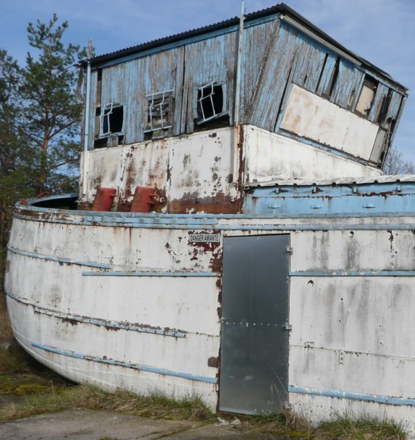 c'est bien vrai que la marquise ne fait pas très jolie, mais j'ai photographié ce bateau au début du printemps 2008 sous ces anciennes couleurs : c'était encore pire... ça fait des années que ce n'est plus une discothèque (elle s'appelait LA PÉNICHE, tout simplement)