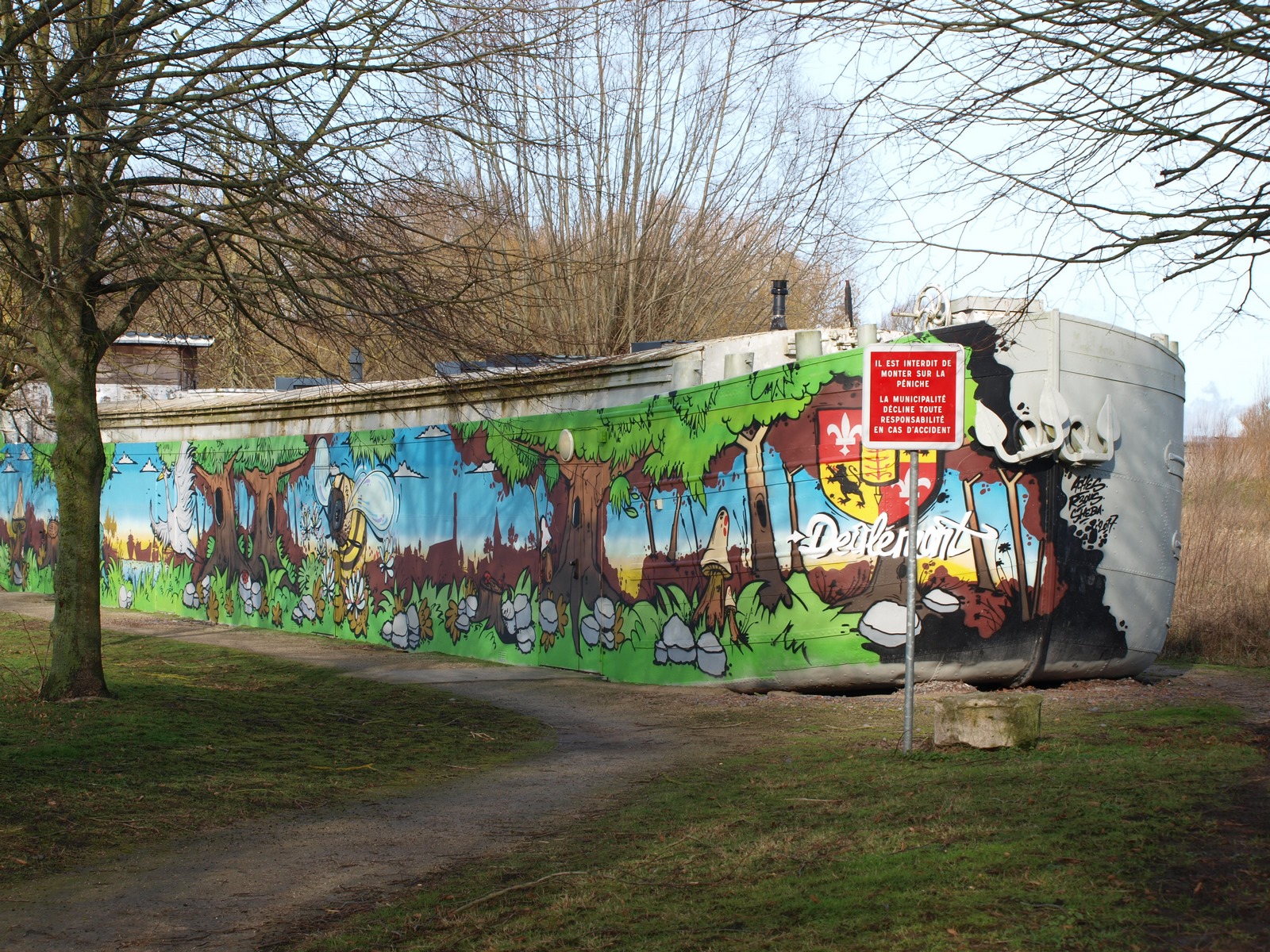 Péniche mise à sec à Deulêmont au bord de la Lys ... Cette péniche est géré par une association (