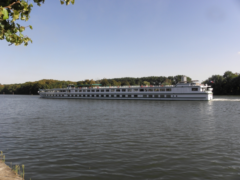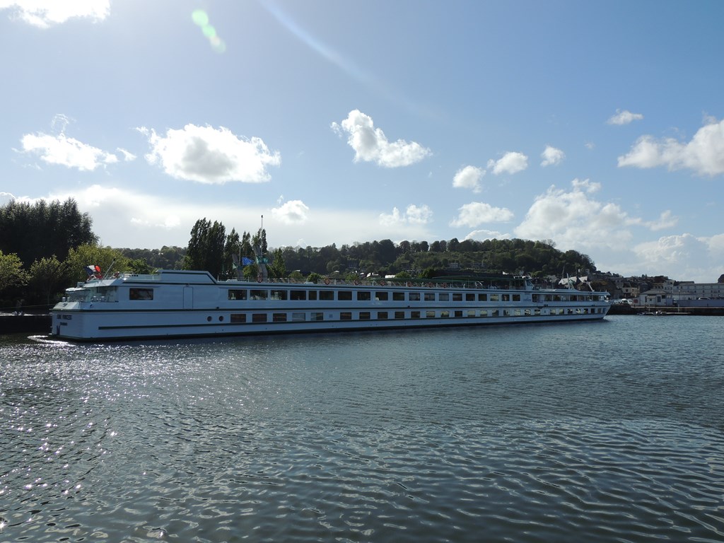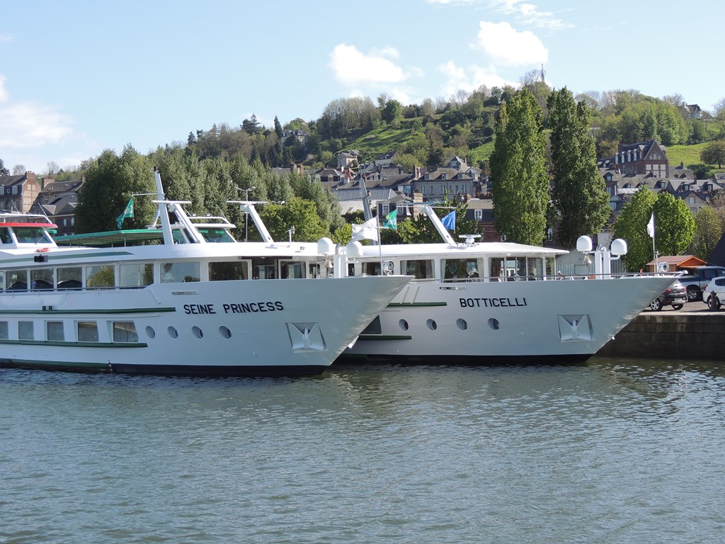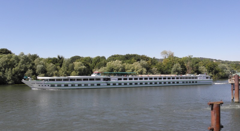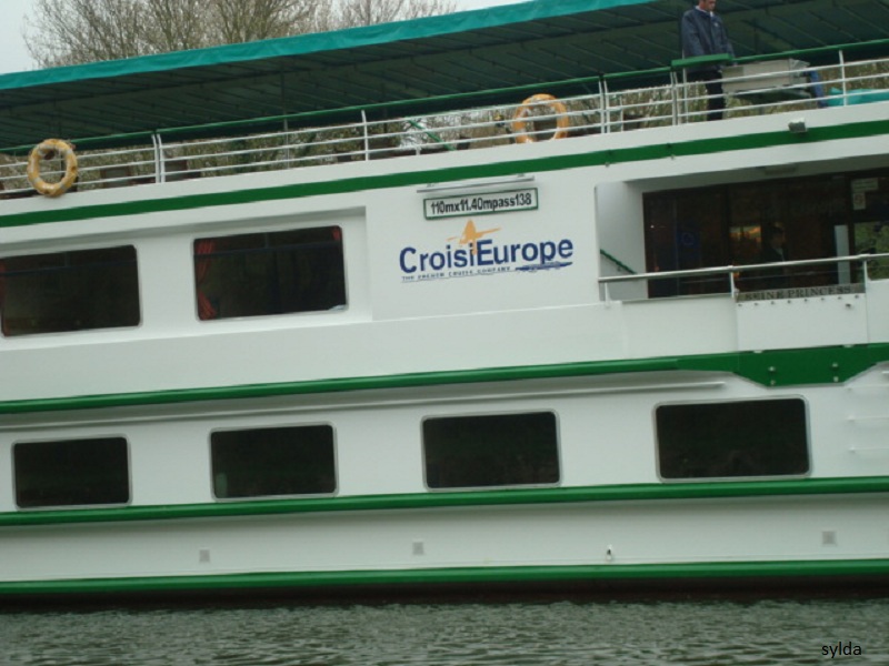 Le bateau effectuant le trajet Fos/le Havre avec lui devait etre le Cezanne (118,75 X 11,40) a Peter Deilmann,pavillon allemand.Par contre je ne sais pas lequel des deux est reste sur la Seine.