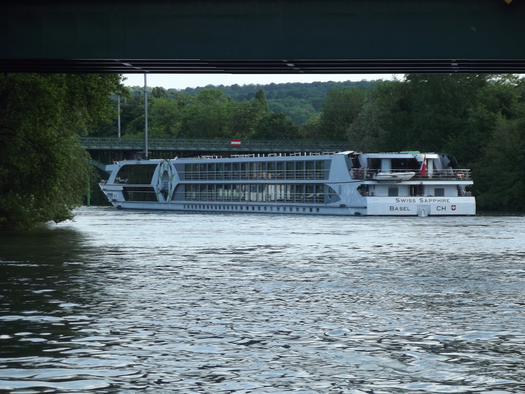 Croisé dans le chenal de Bougival, stoppé avant de passer ce pont et s'assurer de sa hauteur. Pas facile pour le pont de Rueil Malmaison.