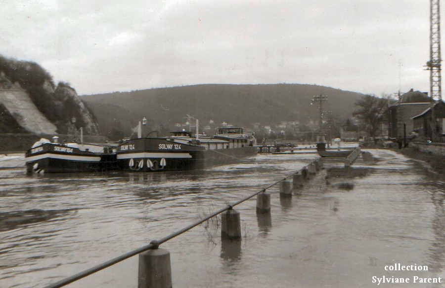 SOLVAY 124 sur la Meuse belge en crue, sûrement à l'amont de l'écluse de Rivière :