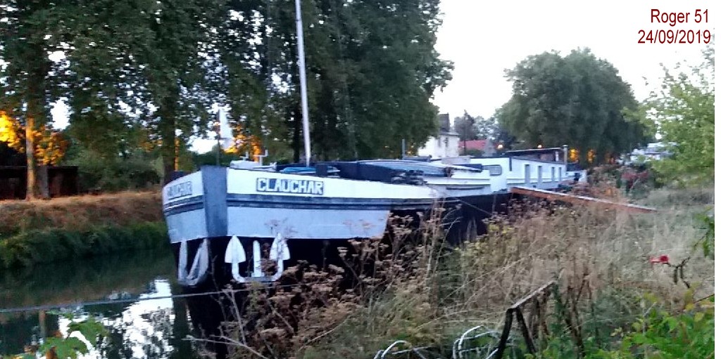 Sa devise est désormais ROCINANTE ; là, il est amarré à l'amont de l'écluse de Saint-Dizier (51), dans le canal d'Heuilley, mais peut-être qu'il est monté là juste pour le chômage du bief triple de Vitry-le-François et qu'il redescendra :