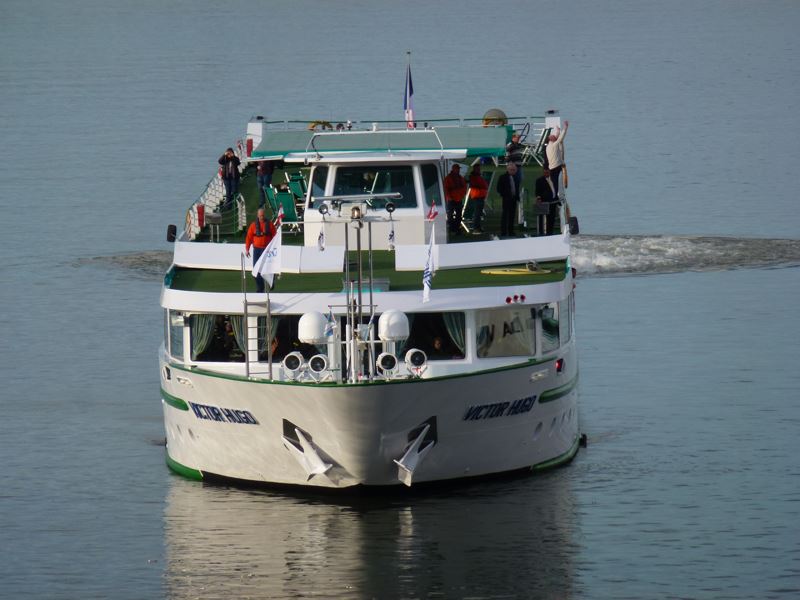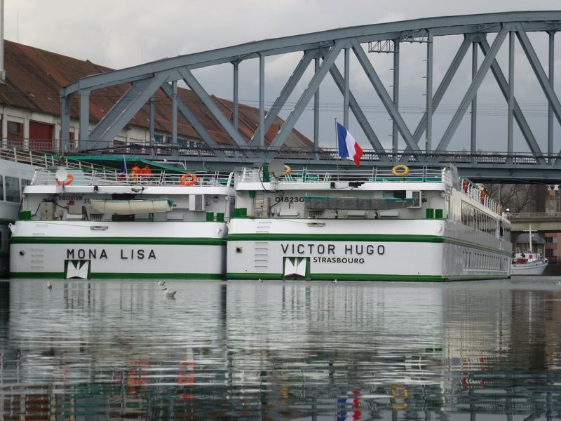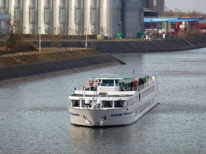 Un bateau CroisiEurope qui navigue, d'après leur site internet, sur la Tisza, l'Elbe, le Danube et le Rhin, construit en 2000 au chantier Meuse et Sambre :