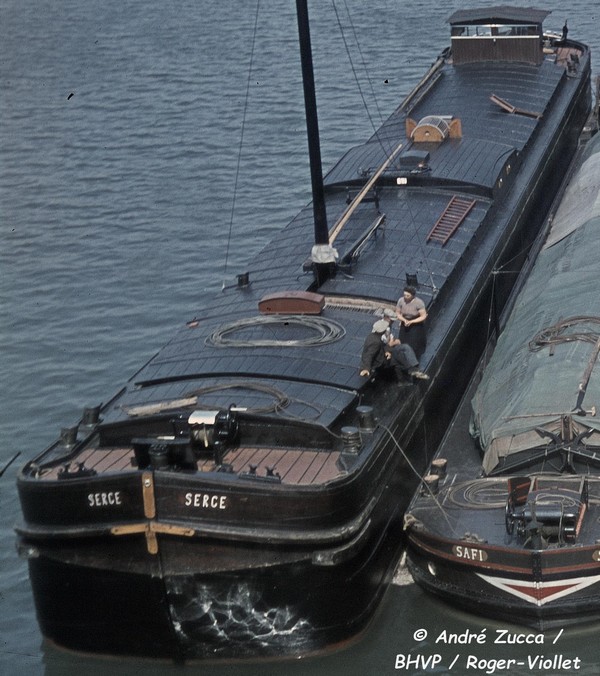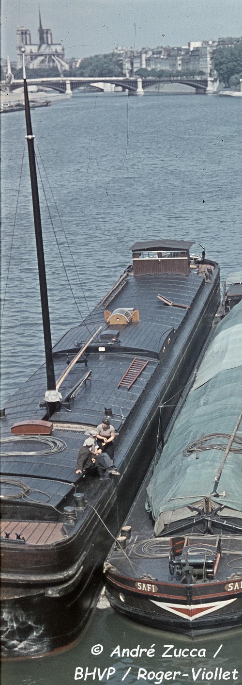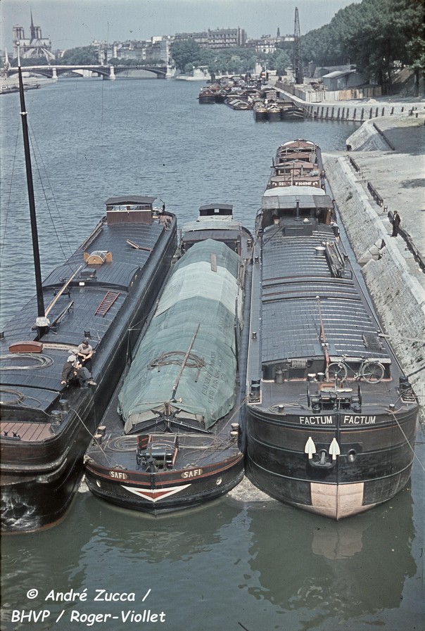 Sur le site bibliotheques-specialisees.paris.fr, on trouve deux diapositives couleur 24 x 36 mm d'André Zucca (1897-1973), photographe, datant de la période fin 1941-août 1944, conservée à la Bibliothèque historique de la Ville de Paris, avec quatre bateaux amarrés au quai de la Rapée, juste avant l'entrée du canal Saint-Martin :