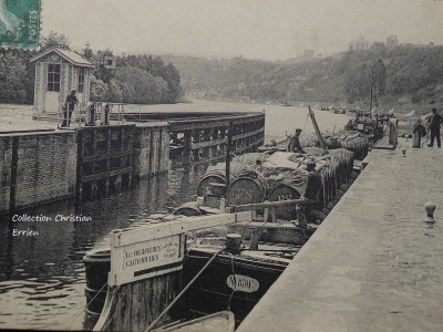 Le bateau en bois se nomme LES DERNIERES CARTOUCHES immatriculation NV 870 F marinier Veuve Rondard à Auxerre (désolé je ne suis pas sûr de l'orthographe du nom)