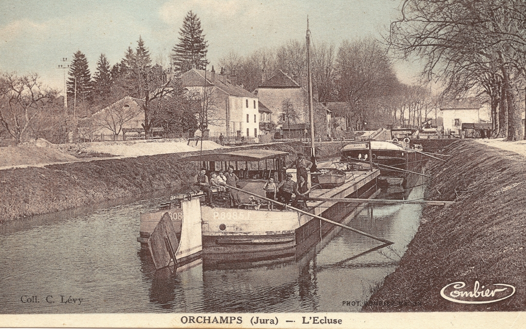Deux bateaux (tous les deux citernes ?) à identifier, à l'aval de l'écluse d'Orchamps dans le Jura :