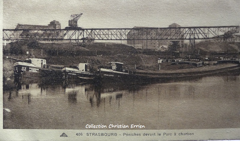 Sur cette cpa de Strasbourg trois bateaux Rhénans . A quai WINSCHERMANN 33 puis ANTARES et au large ATALANTE
