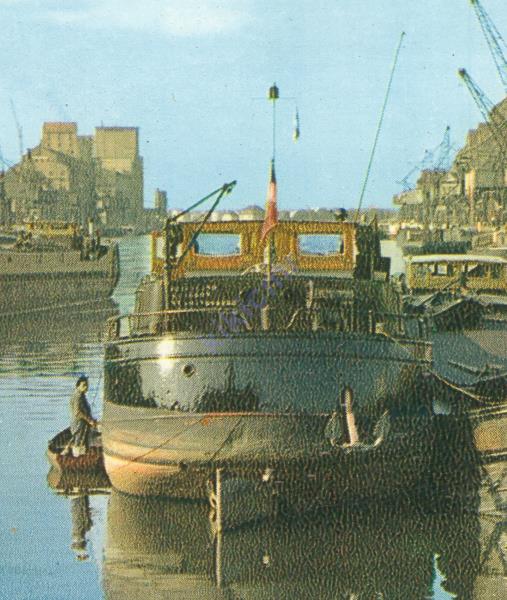 - un bateau avec un drapeau aux couleurs de la Belgique, mais dont les inscriptions à l'arrière du logement ne sont malheureusement pas lisibles, et avec le marinier en plein travaux de peinture :