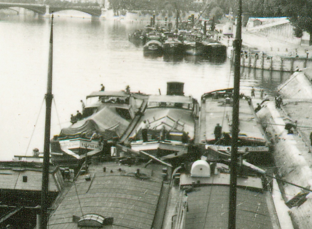 Deux photos montrant des bateaux à Paris, très probablement en 1940: