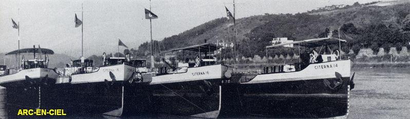 Cliché de promotion, au quai de Vienne, dans les années 1950. CITERNA 14,16,18 et 10 (qui deviendra 20 en 1956), belle progression arithmétique.