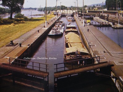 Sur la carte éditée dans les années 70 les portes amont s'ouvrent et on ne peut identifier que Simoun.