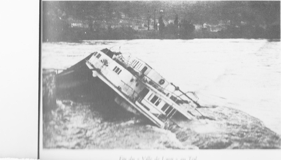 Photo et texte extraits de "le Rhône autrefois" de Guy Dürenmatt. La fin du VILLE DE LYON sur une pile du pont du Teil.
